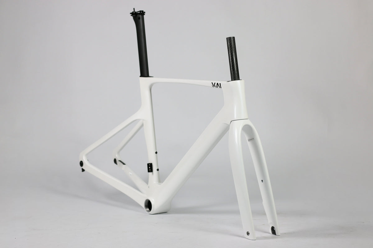 Mit vollintegrierter Kabelführung, T47 Innenlager und UDH-Schaltauge ist das Rahmenset technisch zukunftssicher ausgelegt. Die Reifenfreiheit bis 34 mm bietet zusätzliche Reserven für Komfort und moderne Straßen-Setups, ohne den aerodynamischen Fokus des Bikes zu kompromittieren.