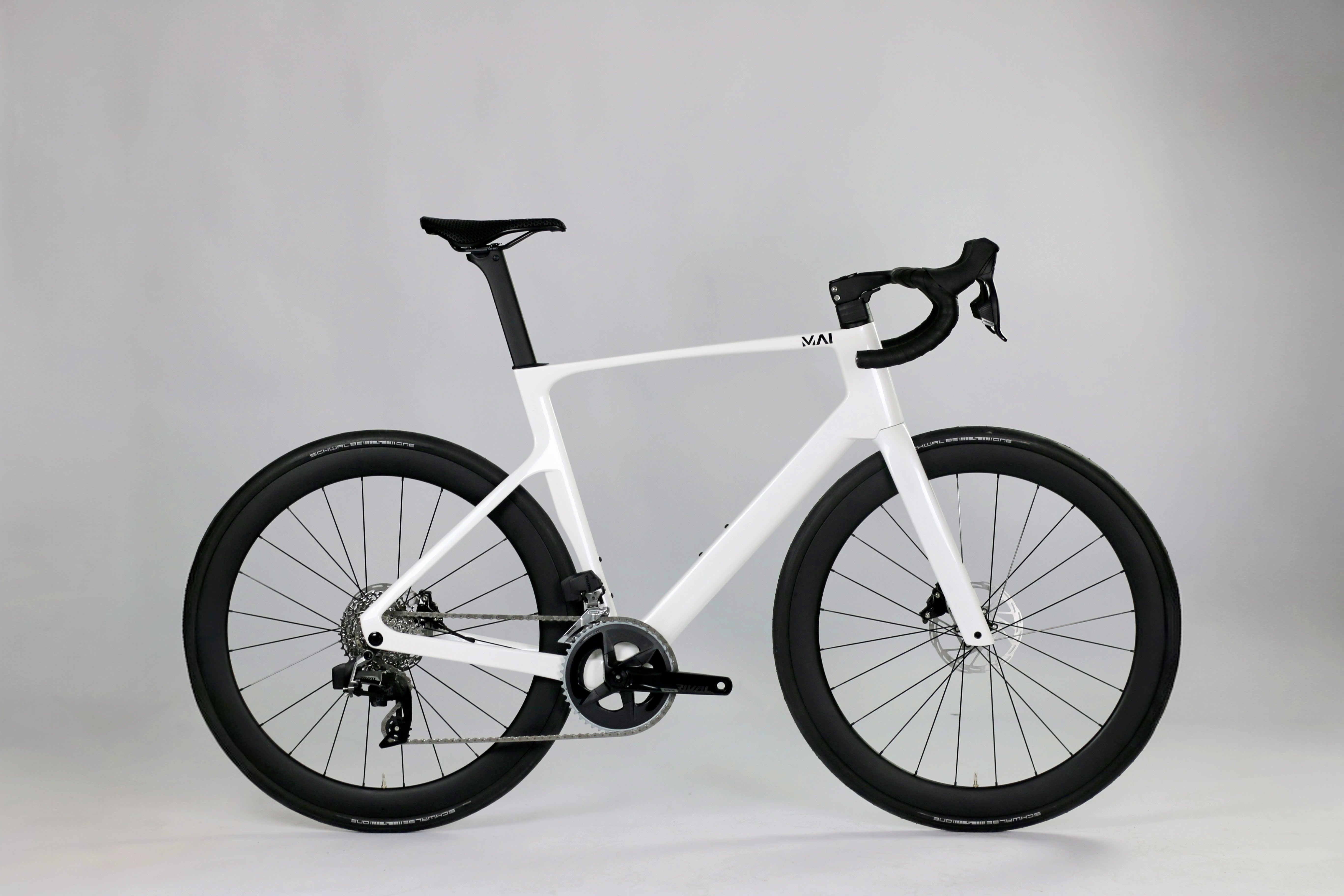 Der Carbonrahmen des Mai Glide bringt in Größe M nur 970 Gramm auf die Waage und bildet die Basis für ein direktes, effizientes Fahrgefühl bei hohen Geschwindigkeiteiten.